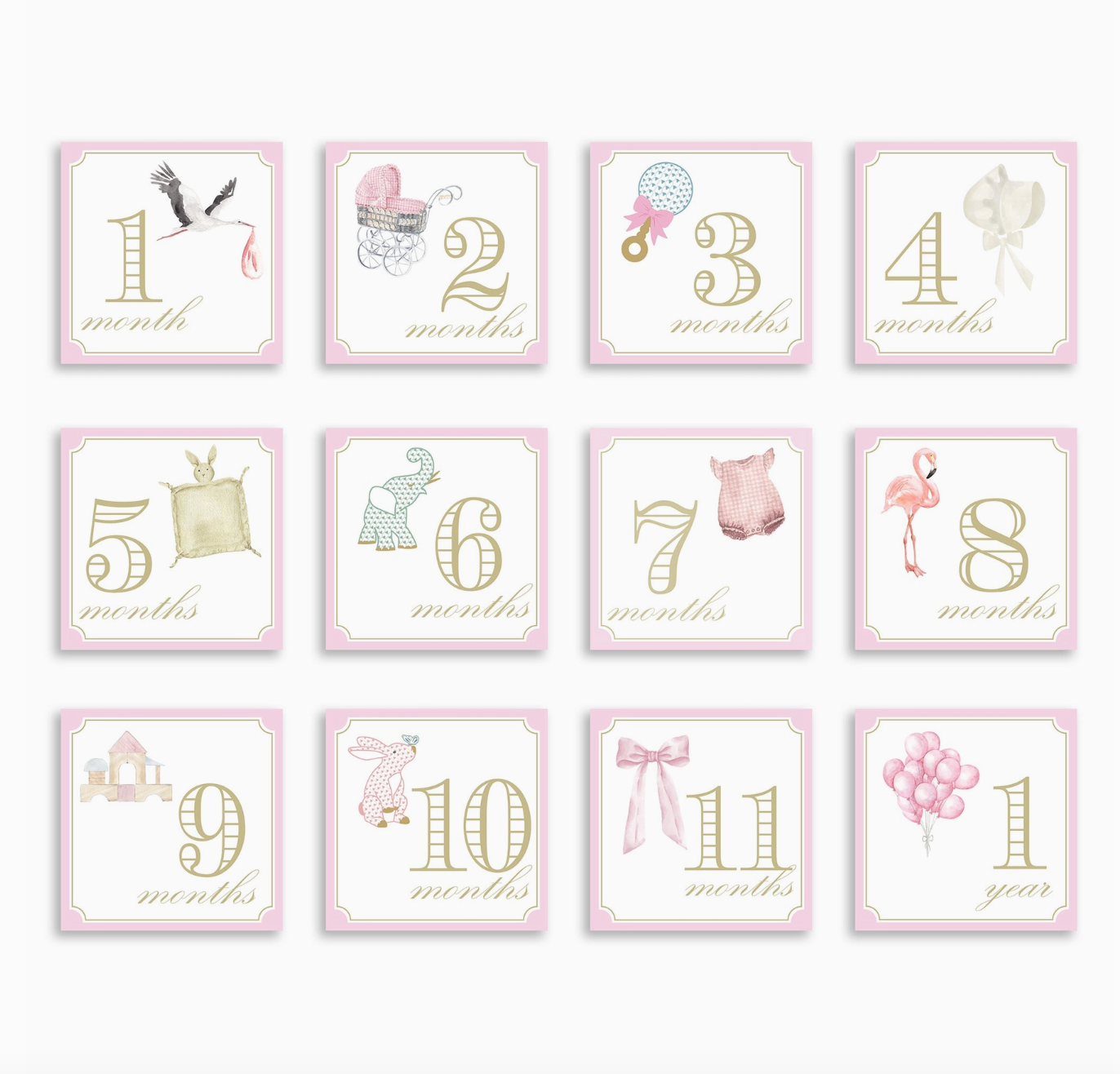 Capture adorable monthly photos of your little one with these classic milestone cards or just use them as keepsakes! the front of each card features a different illustration with each month, while the back contains a space to jot down milestones or memories from each month